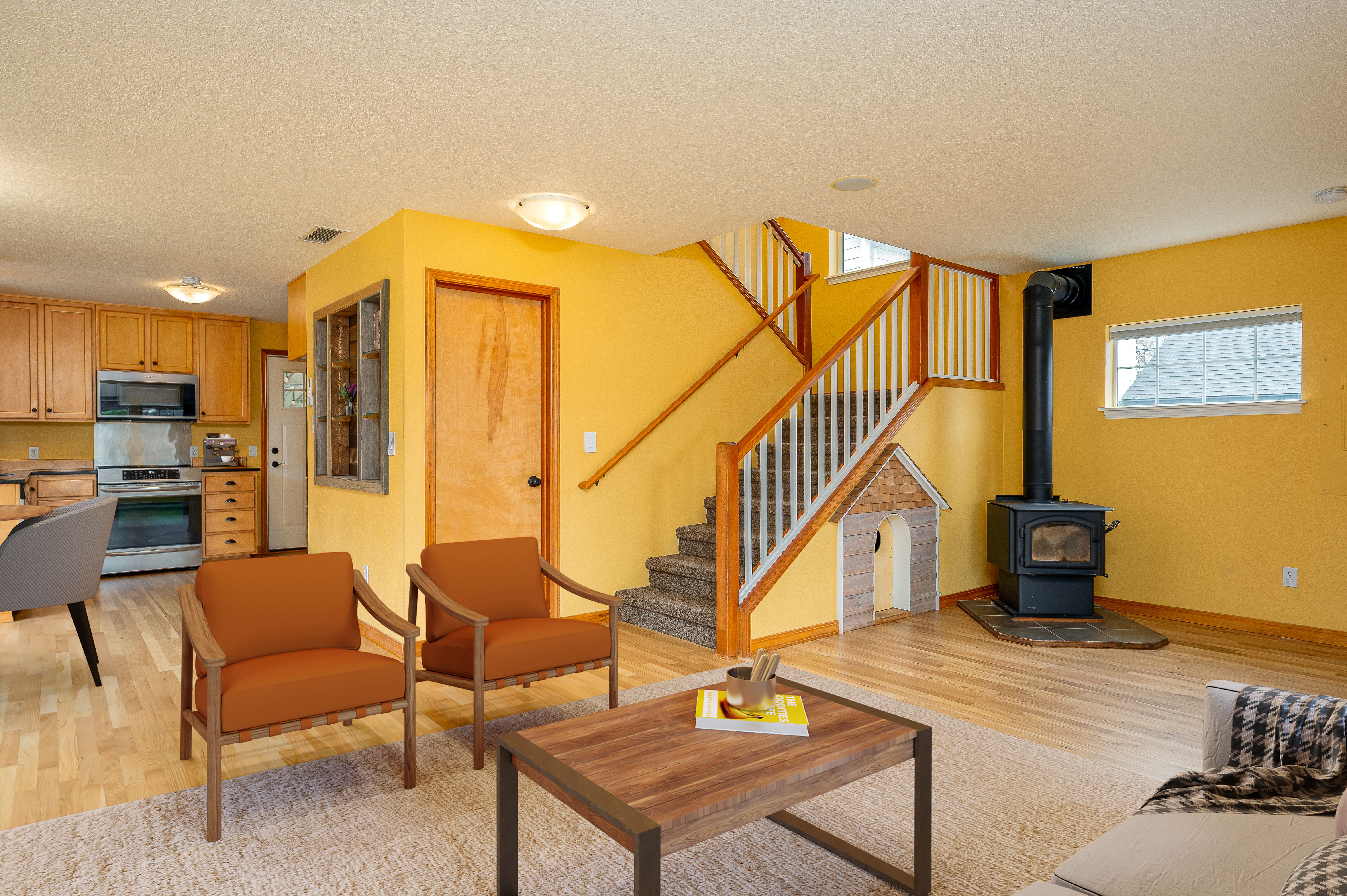 No matter the weather, you’re set with heating and cooling from the mini-split as well as a newer (certified) wood stove. There is a bedroom on the main floor and two large bedrooms upstairs with a full bathroom and laundry room. There is a custom dog door to a dog run that you have to see to believe. Minutes to New Seasons, Fred Meyer, dining, parks & community garden.